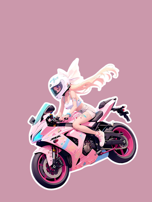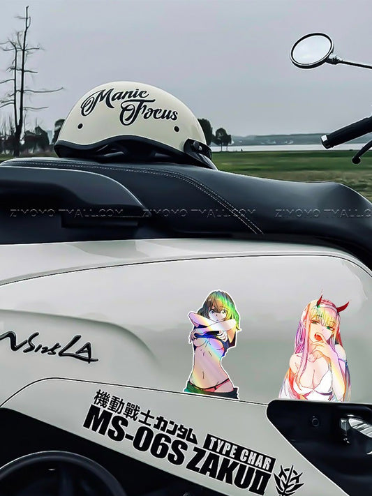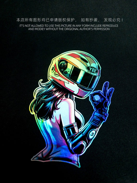 Motorcycle Girl Rider Reflective/ Holographic Stickers