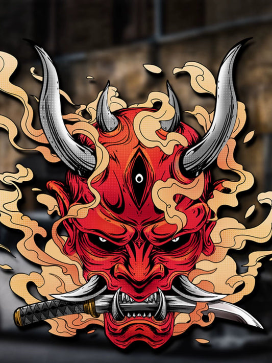 Kabuto Hannya Japanese Samurai Metal Sticker Ornament